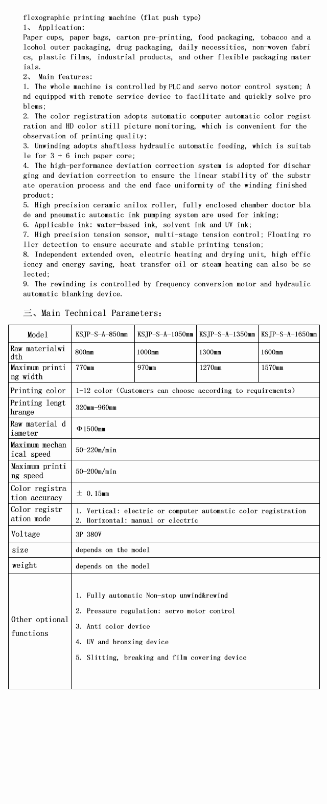 KSJP-S-A unit type flexo printing machine with automatic color registration